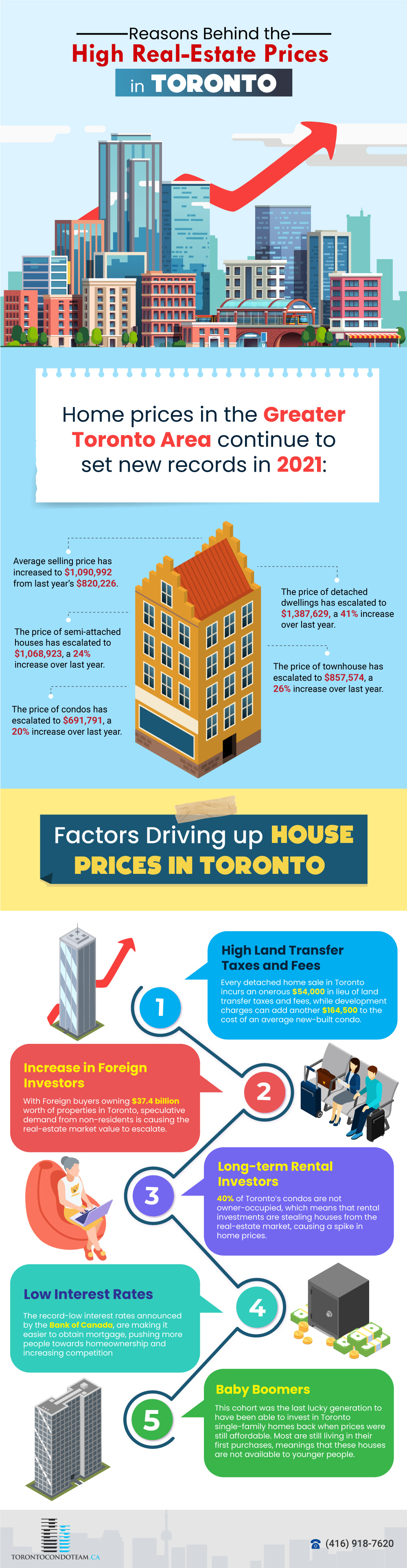 For many people, owning a property in Toronto has become a distant dream due to exorbitant prices that continue to set new records in 2021. While the pace of price growth comes slightly down from time to time, home prices will mostly continue on the upward trend. Combined with the fact that the median income in the city has failed to keep up with mounting house prices, it is quite impossible for most people to think about home ownership. From low-interest rates, to the proliferation of foreign buyers, to onerous land transfer taxes and fees, here are the biggest drivers of high real-estate price growth in the GTA.